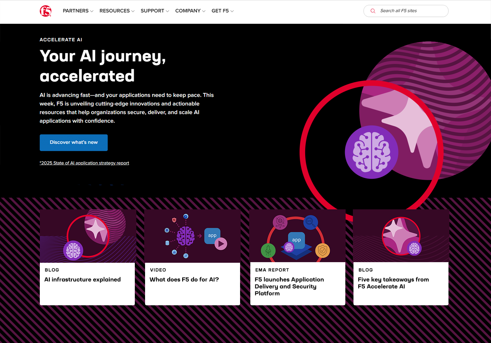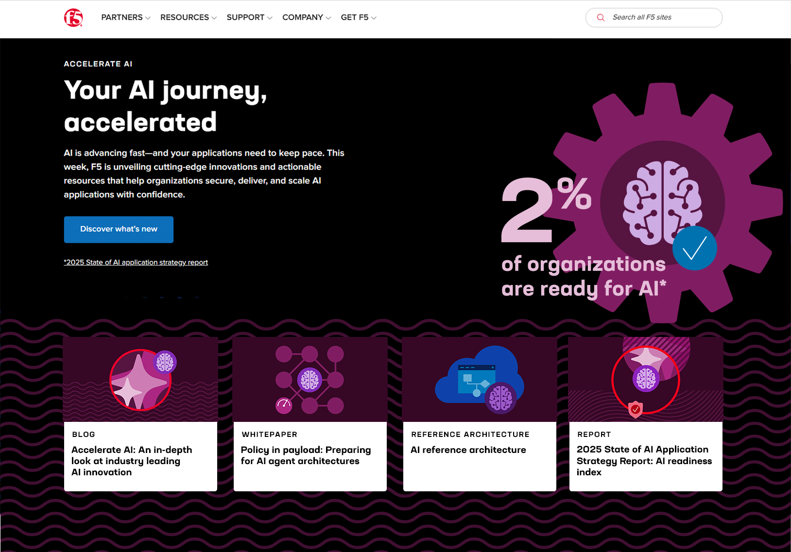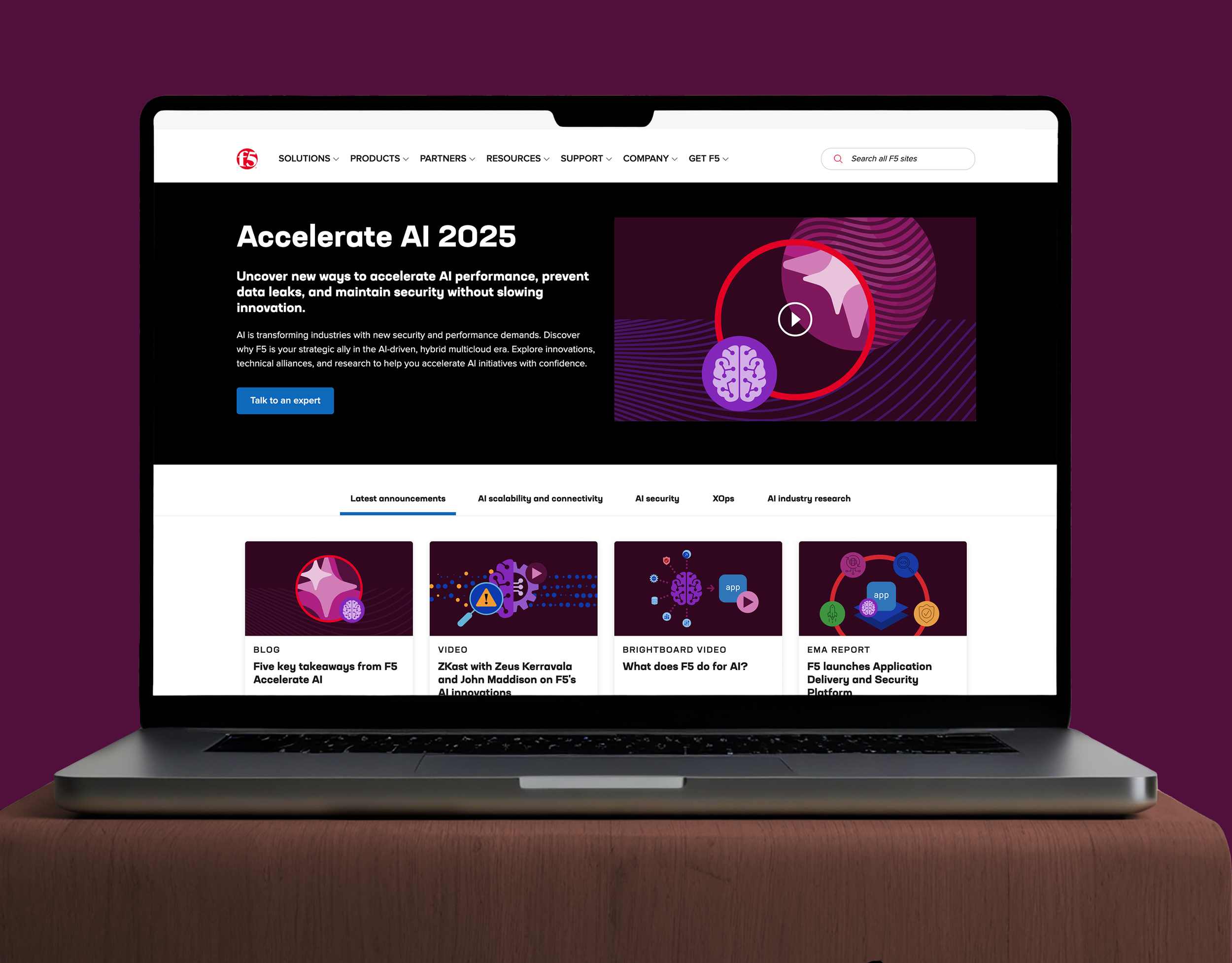 Accelerate AI was a week-long, multi-channel initiative designed to elevate F5’s AI narrative and position the brand as a leader in enterprise innovation. The program required alignment across web, social, external creative agencies, internal stakeholders, and strategic partners, translating complex capabilities into a clear, unified story.