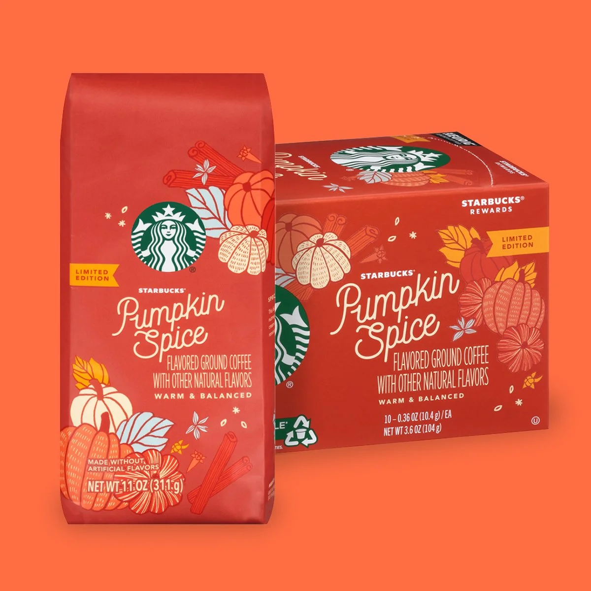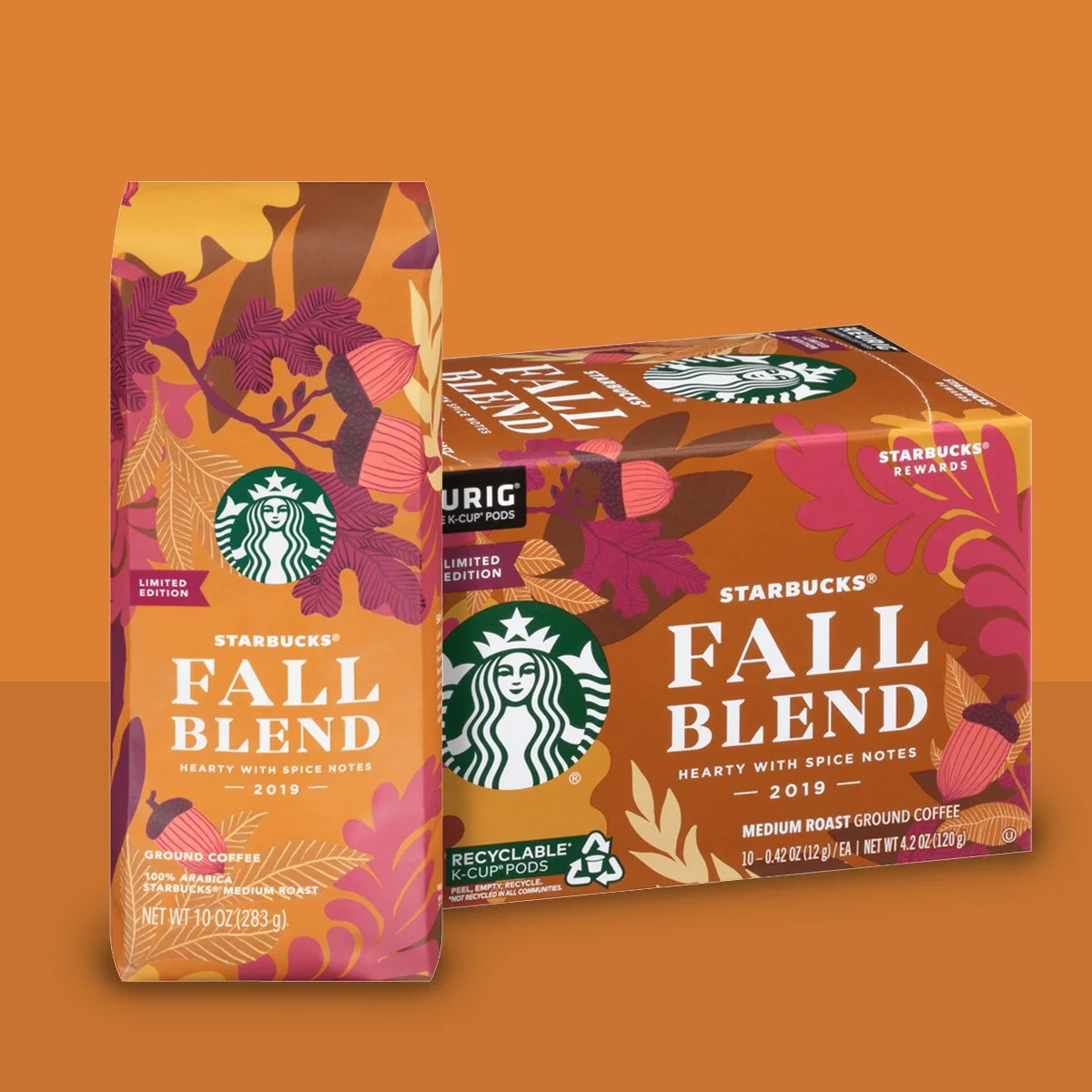 Created in collaboration with Anna von Huben, the Fall Blend packaging uses illustration to capture the warmth and richness of the season. The expressive artwork supports seasonal storytelling while maintaining clarity and cohesion within the larger Starbucks packaging system.